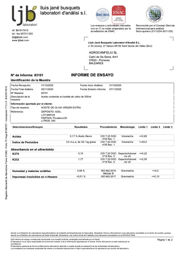To inspect our oil’s analysis certificates, simply click on the following images!